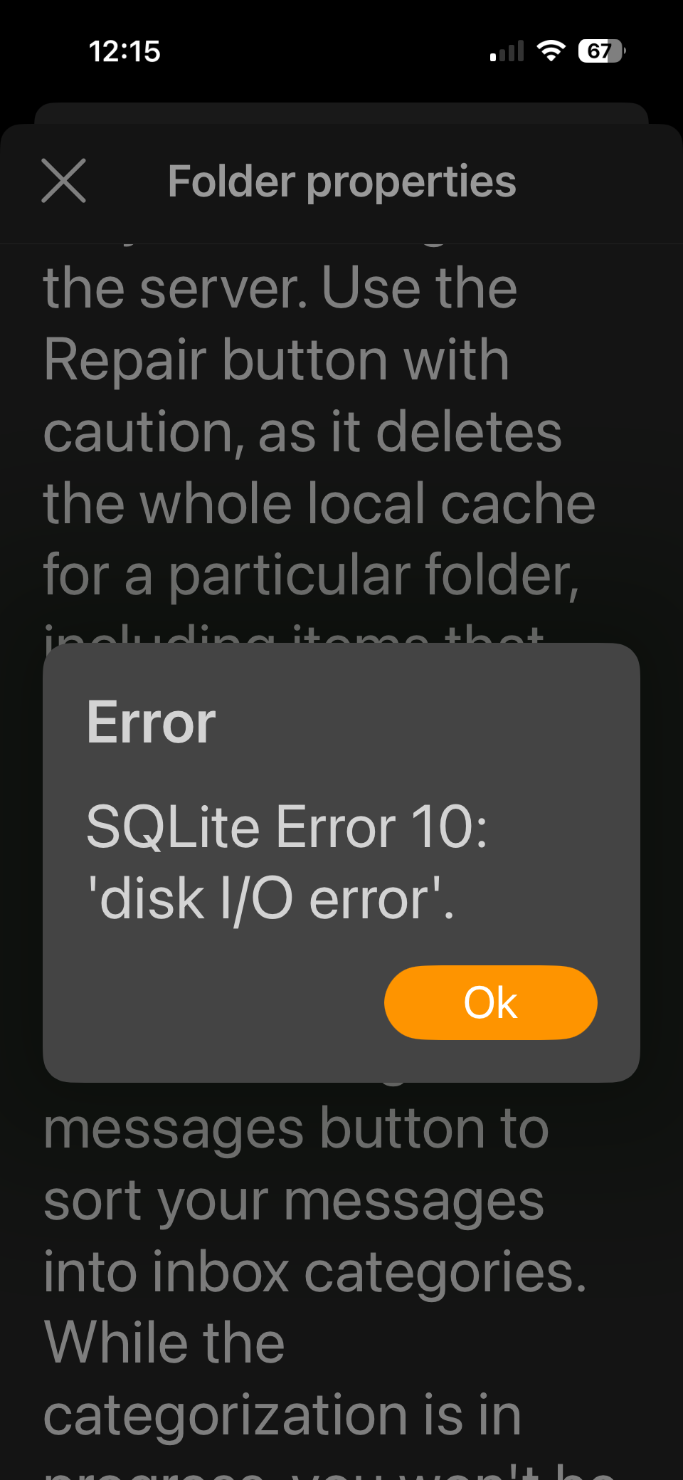 So first i could try “closing eM Client” and then manually running the repair in the dos prompt or terminal depending on if you have Windows or Mac and see if that fixes the problem.