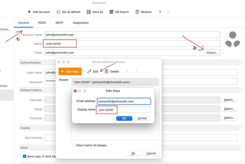I switched from Postbox (on the Mac) 2 years ago (I had to since Postbox went away – great email client, btw) and now EVERY email I send out on my email address shows up in the recipients’ inboxes as being from “emollient” rather than from me… this is driving me nuts. I tried following some directions I saw on the web to put my name in the “NAME” field in the Emclient settings configuration but nothing has worked.