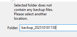 I tried to backup many times like transfer to another computer but it doesn’t work. It keeps saying the folder doesn’t contain any backup files like photos.