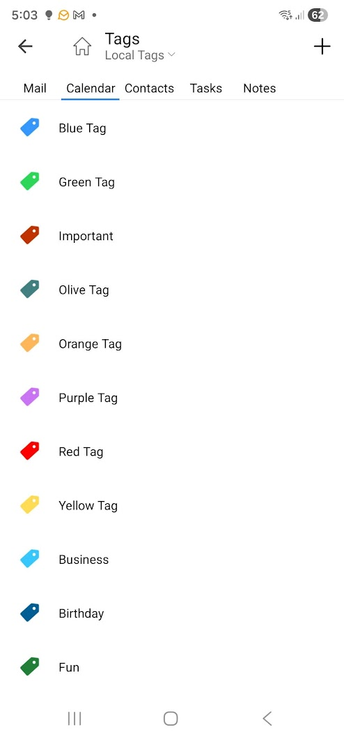 When I implement the Android version of eM Client on my phone and tablet, the calendar tag colours change totally from what I have on my desktop but are consistent by type of event and are the same for both phone and tablet as per the screenshots end of this post.