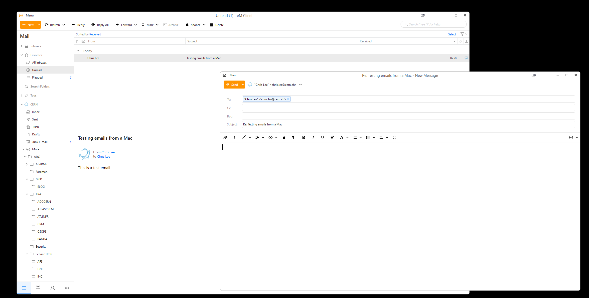Replying to the mails using outlook works, but there is a reason I paid for eM client… mostly NOT to have to use outlook