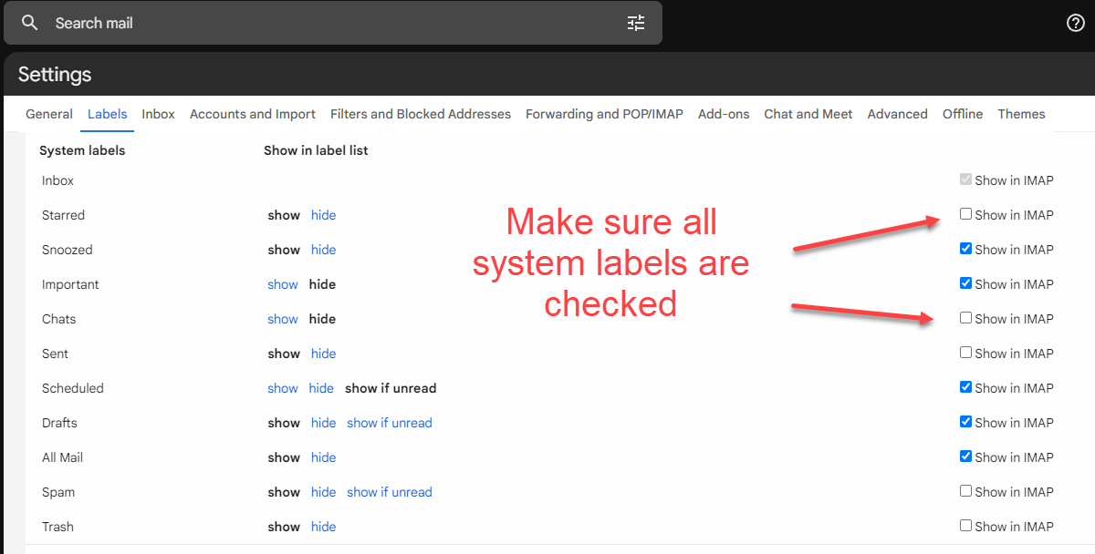 Make sure all of GMailâs System Labels are exposed to IMAP