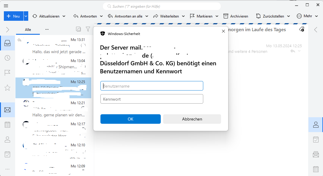 If I click Cancel, the email can still be read, but it looks very strange.