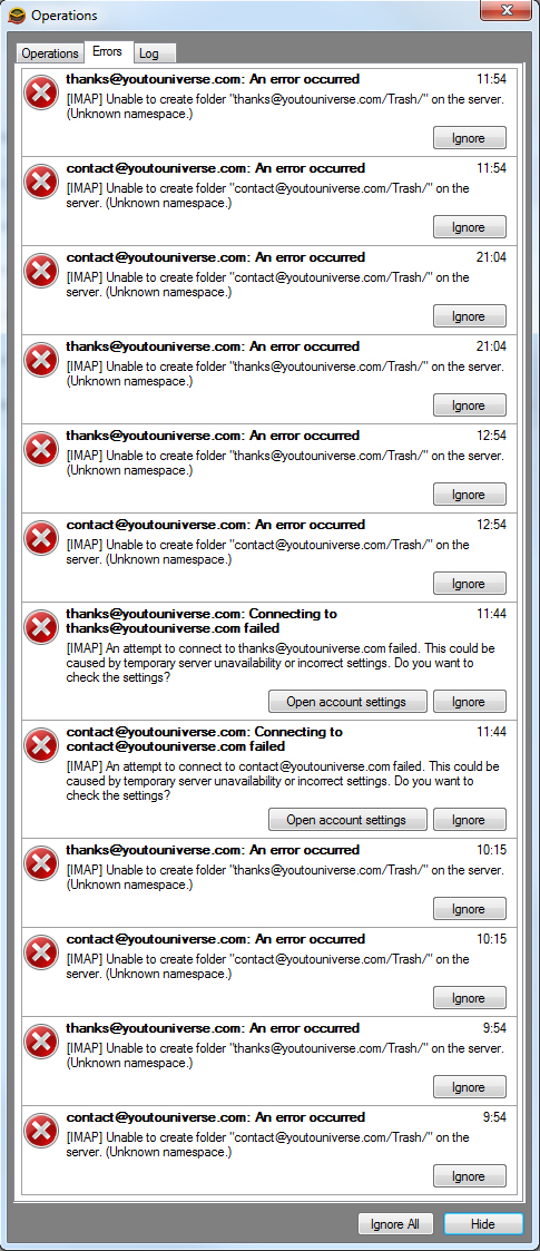 [IMAP] Unable to create folder “[email protected]/Trash/” on the server