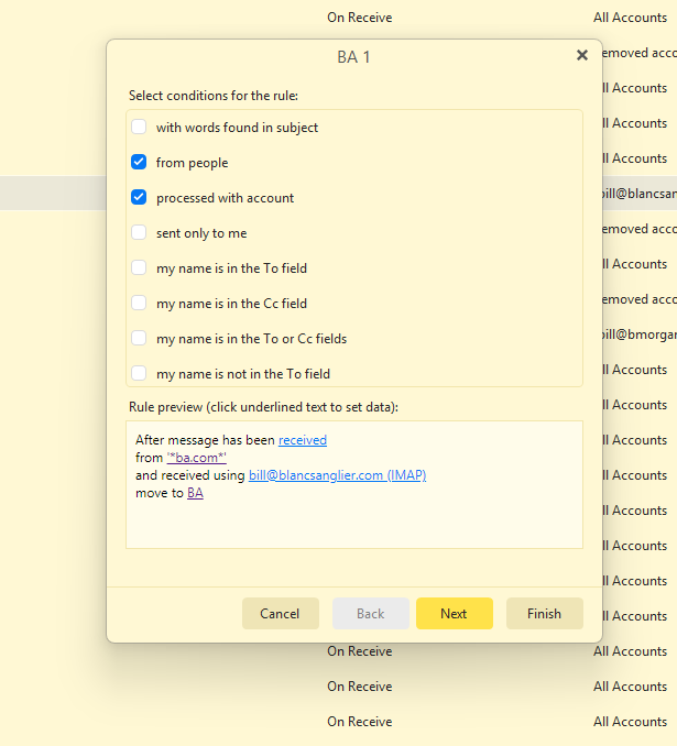 The software (not me) IS ADDING the (IMAP) suffix to the email address in the rule so the rule fails to move the email to the selected folder because it doesn’t match the from email address - see example email received 2.
