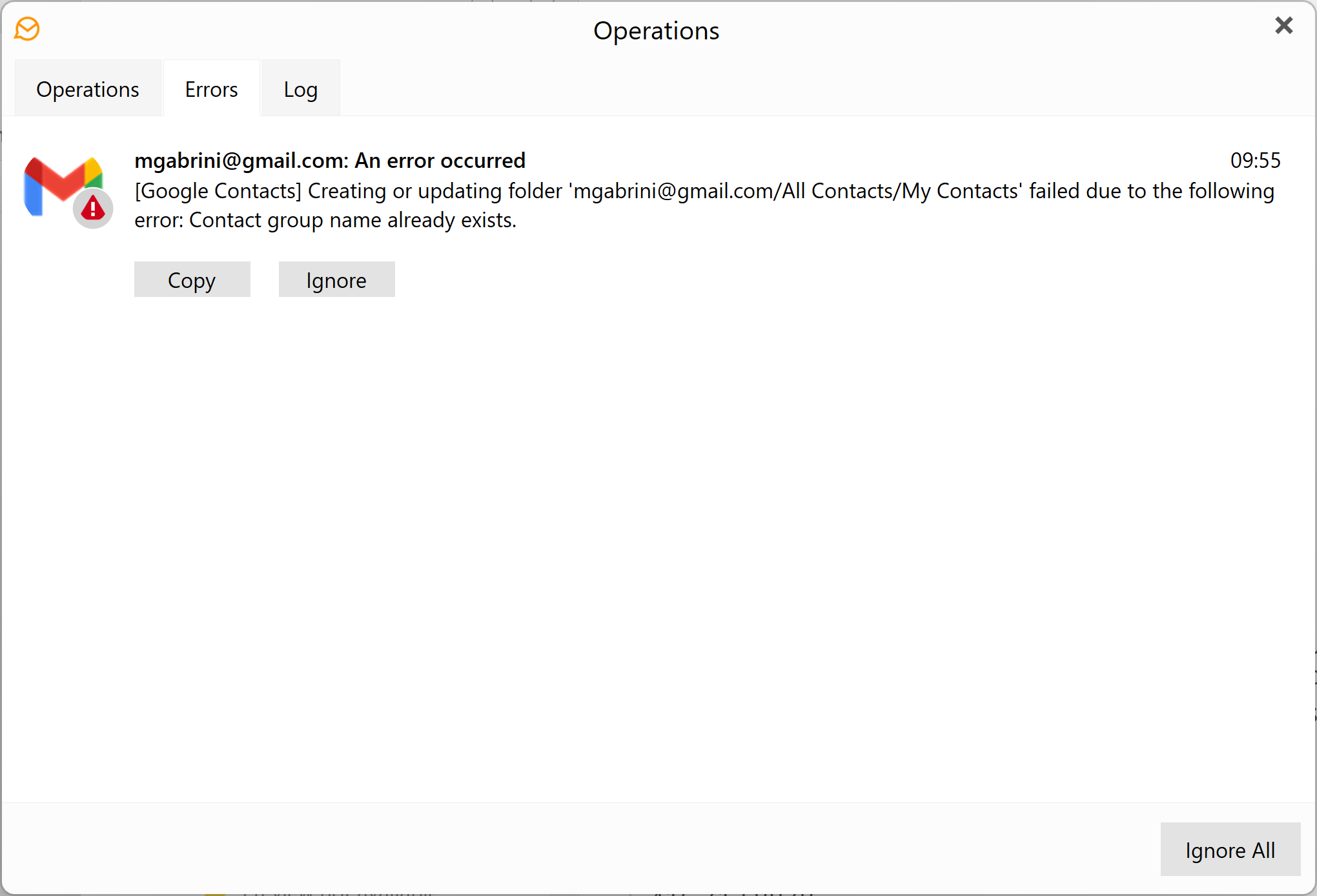 Go to eM Client Contacts section, and then “Right click” on the word “Contacts” directly under your Gmail account and click “Properties” at the bottom. Then click the “Repair” tab at the top, and finally click “Repair”.