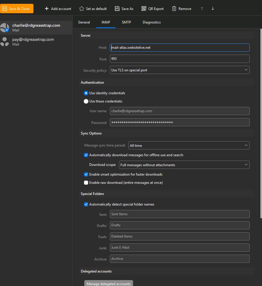 Also attached my IMAP settings in emClient which has not changed the slightest bit since day 1 I’ve not been having this problem.