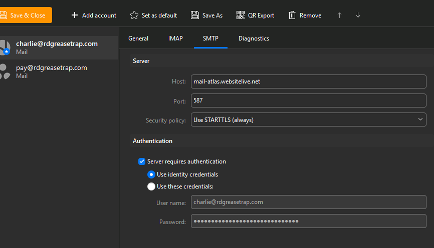 Both Thunderbird and emClient auto generated these IMAP/SMTP settings. I’ve never had to configure this and has worked perfectly fine the past year up until yesterday.