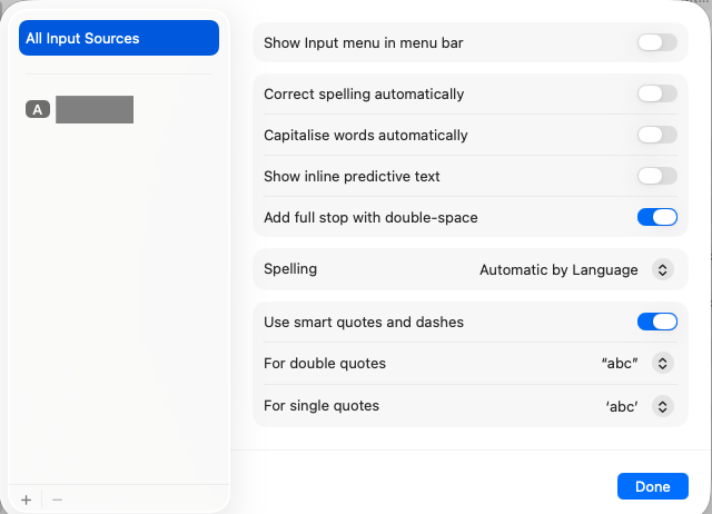 Under the “Text Input” section, click the Edit… button next to “Input Sources”.
