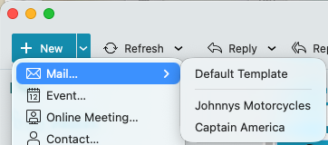 Then once you setup “Open world time clock app” so you know which template to use before sending your email via clicking the dropdown on the right of “New” as per the below example.