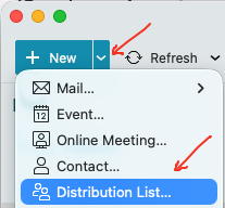“eM Client enables you to create so called distribution list, which is basically a list that can contain any number of contacts. Once you have created the distribution list, you can use it by filling in its name in to the recipient field, while you are writing a new message, and the message will then be simply sent to all contacts that are contained in the particular distribution list. To create a distribution list click on New > DistributionList and the following window will appear”.