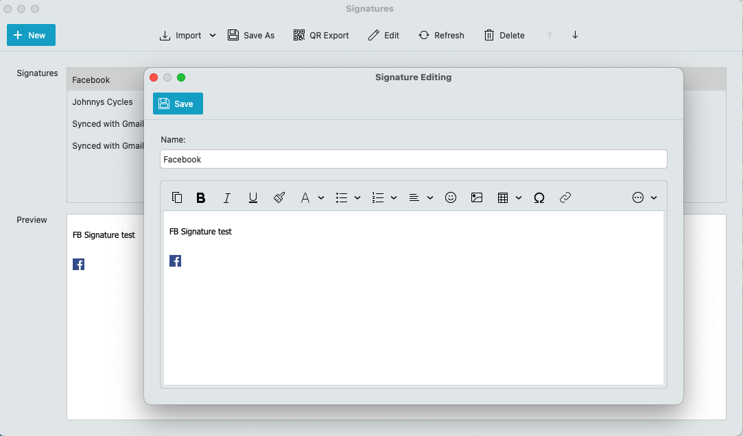 Ive tested creating a signature in the latest eg: eM Client V10.3.2622 for Mac and used “Pinta” paint program to resize a FB (.png) icon to 17x17pixels and saved it back out as a .png file and it inserted perfectly in a new signature “and did not automatically go larger” even without using a table as per the example screenshots below. It stayed at the same size.