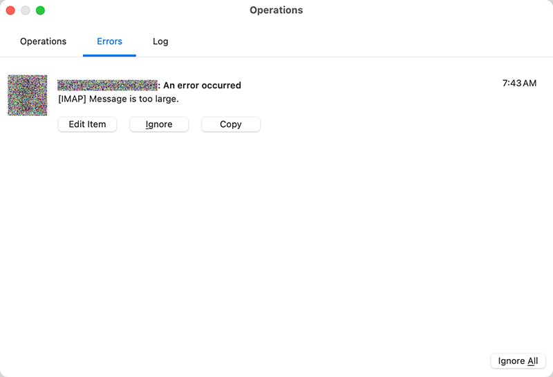I also have emClient version 10.3.2622 installed on my MacBook Pro where from a single email account that also exists on the Windows client I am seeing this error: