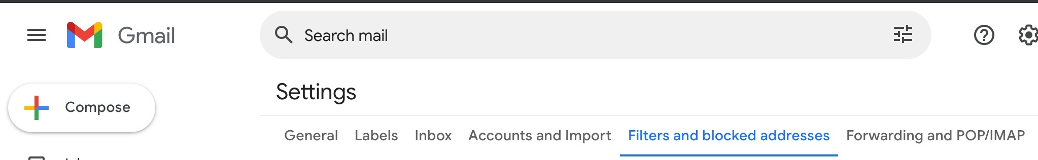 Click the Gear icon” at the top right of Gmail online. Then click “See All Settings” and click “Filters and Blocked address’s” along the top.