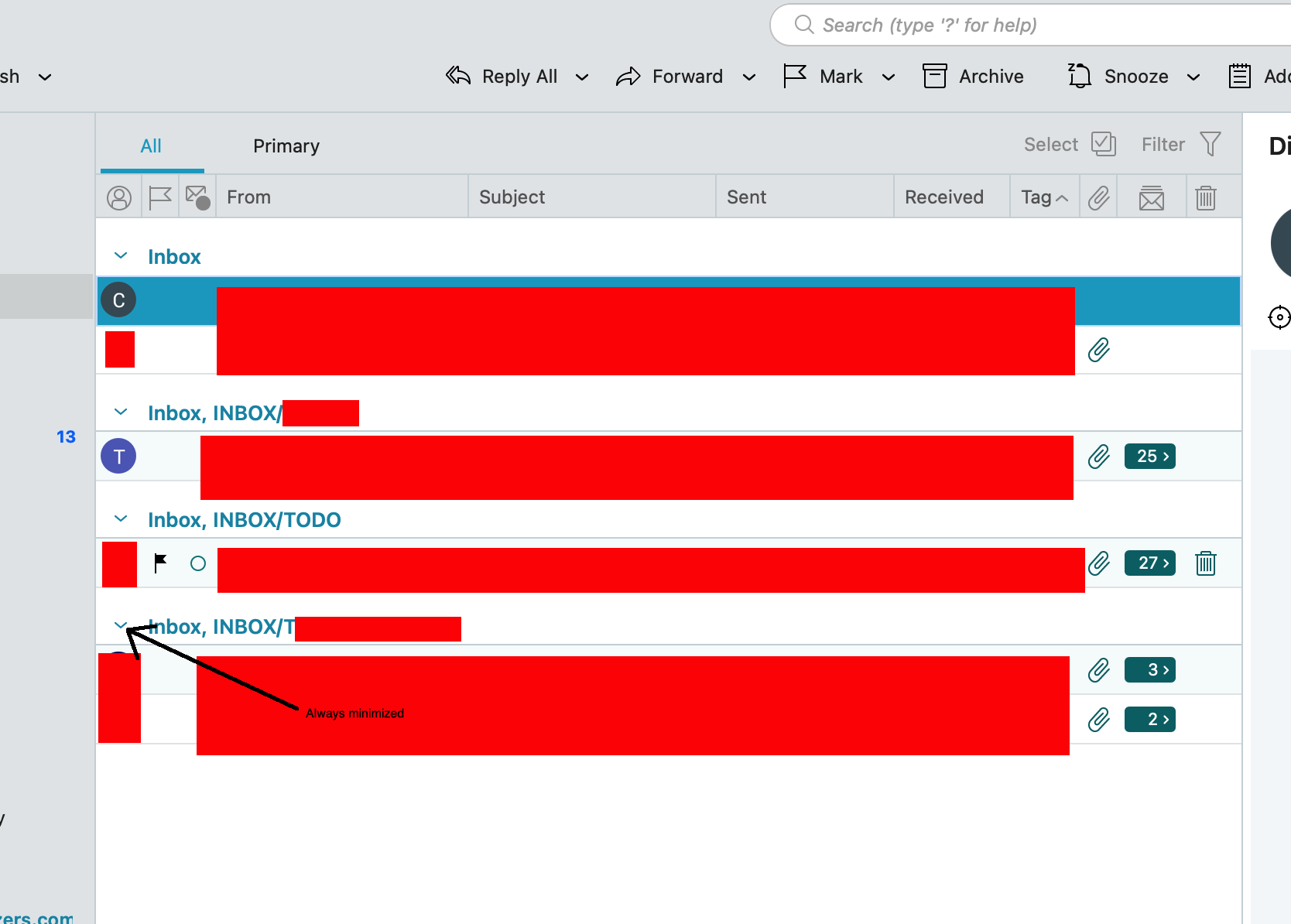 I have many of these sections which are seperated by tags. I want to minimize the tags that I do not need to see daily. I do not want to snooze them.