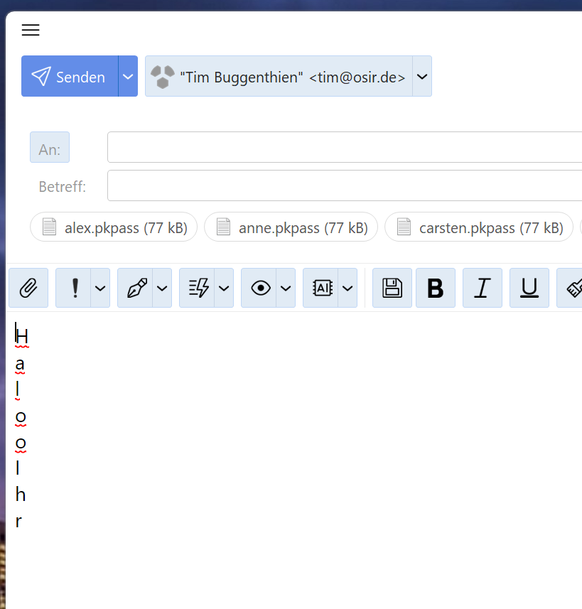 I had this now quite some time, when doing a new mail and I start typing, each character gives a new line… Only after deleting all typed text, the text entry will go horizontal. What is this strange behavior and ist there some setting controlling it.