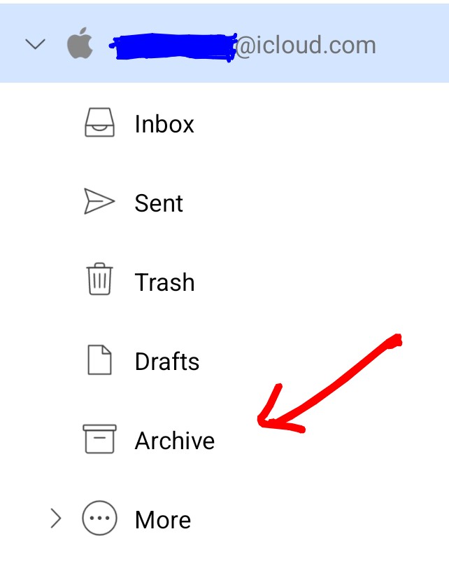 Note: Sometimes the Archive folder will appear “below the More menu” but can be visible above via pressing your finger on it and pressing Show
