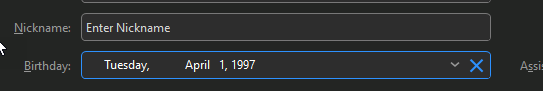 I am trying to set someone’s birthday, but even though I can focus certain parts of this editor I cannot change them (like the month. I just want to type 10/9/71 (made up) but it is instead forcing me to go through the picker and wind back years/months. This same picker vexes me on meetings. Please consider modernizing something that allows efficient keyboard entry, like 3/4 would place 03/04/2026 (current year if left out).