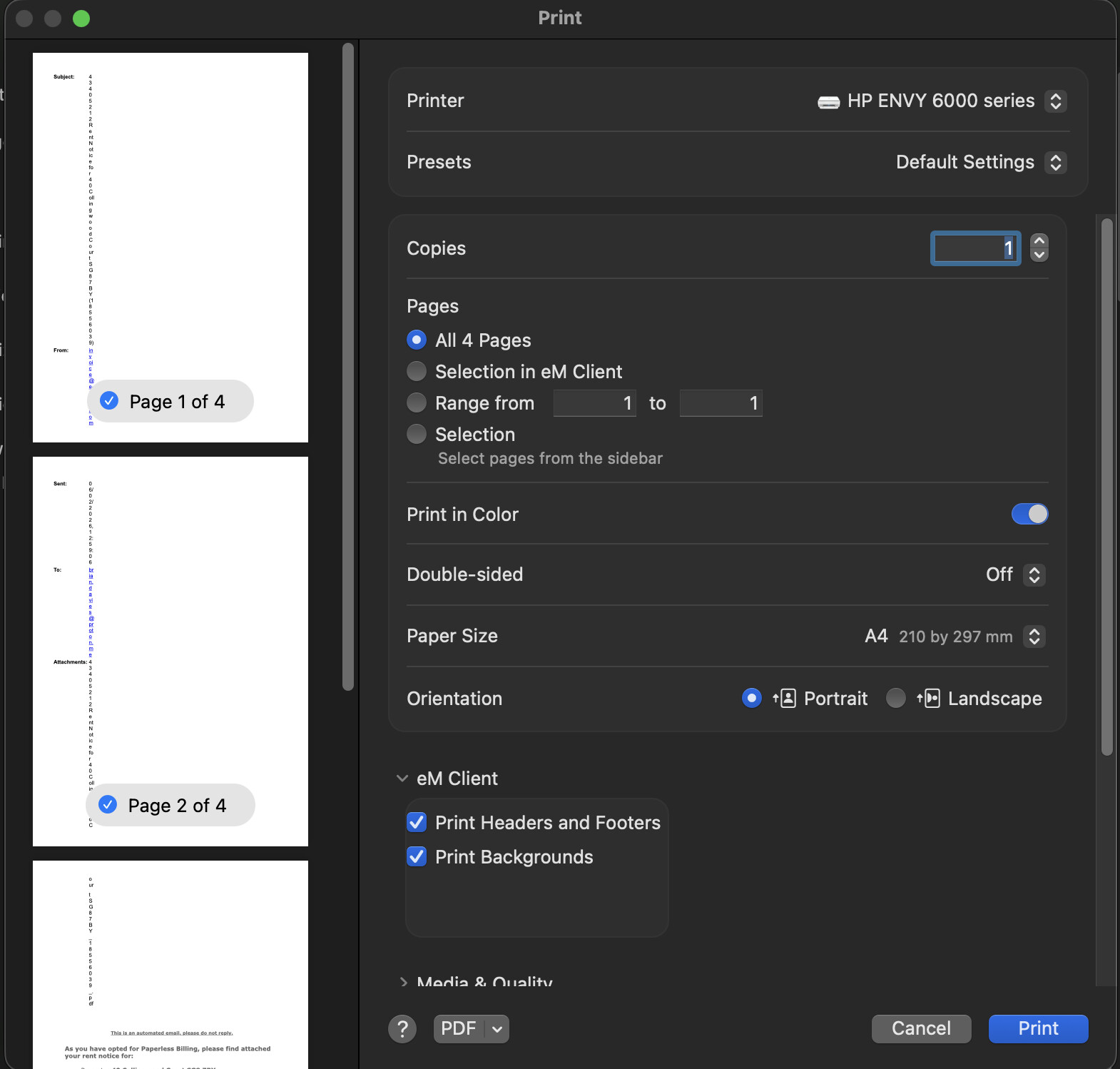 I don’t often need to pringr an email but when I do it invariably appears like this. I must have something set up wrong. Can anyone help, please?