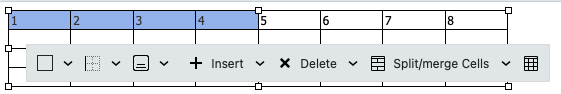 Selected the first 4 cells in the 1st row of the table and pressed copy.