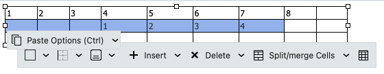 Then selected the first 4 cells in the 2nd row of the table and selected paste.