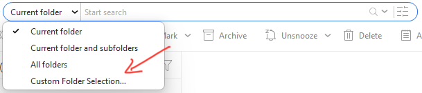 No you donât normally need to select custom. You only usually select âAll Foldersâ in the search and it should find exactly the same thing âwith the same search optionsâ in the dropdown field.