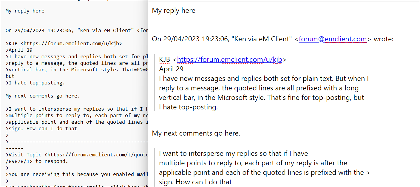 vertical bar, in the Microsoft style. That’s fine for top-posting, but
