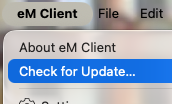 If that makes no differance, then could be your eM Client version might need updating. If you originally installed eM Client from the website, then you can check for the latest versions for PC and Mac via the release history page.