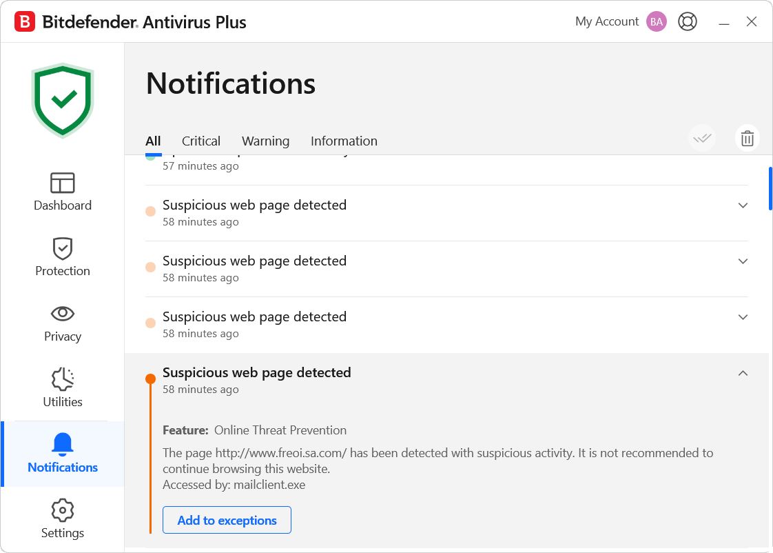 I do not have Bitdefender myself, but in the screenshots you showed it just says: