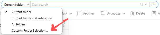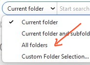 If that still doesn’t find what you’re searching for, try selecting “Custom Folder Selection”in the search field dropdown on the far left V10 or far right V9 or older and “select / check everything in there” including Local Folders at the bottom left and see if that finds what your searching for.
