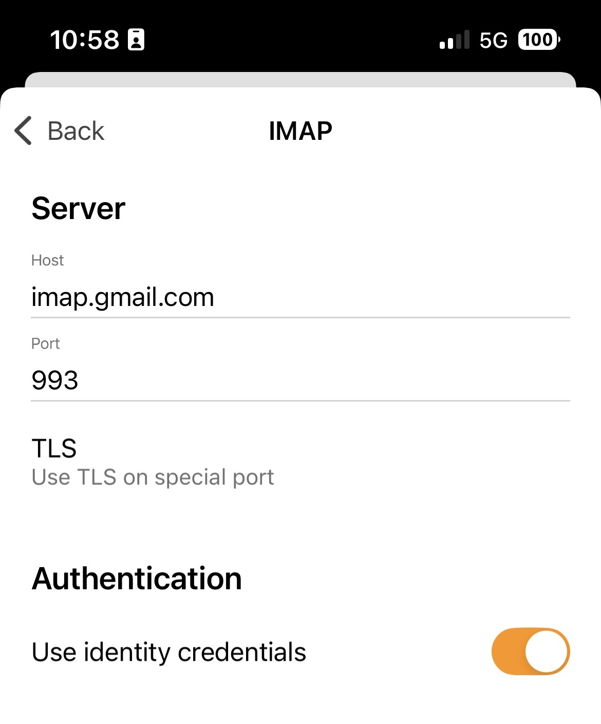 These are the Gmail IMAP settings I’m currently using on iOS app on iPhone and iPad that seem to work for me personally using wifi or cell data.