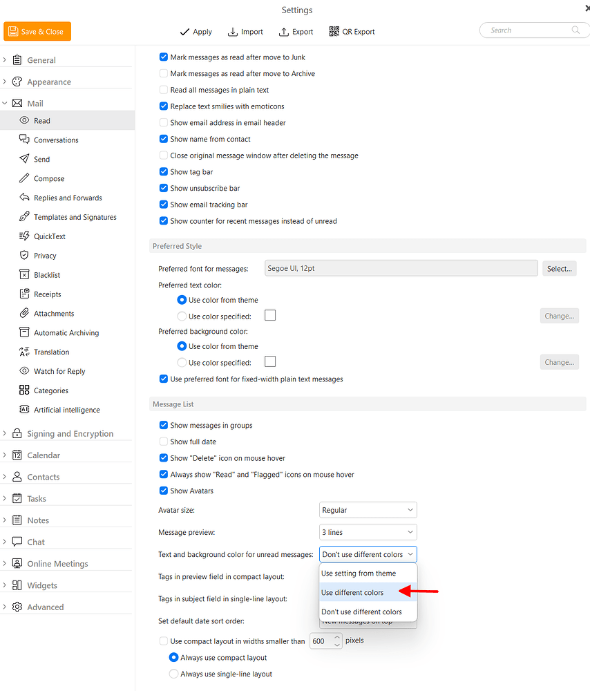 You will be able to change both the text and/or background colours of unread messages to make them more visible.