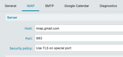 Ok could possibly be the wrong Gmail IMAP settings. Go to “Menu / Accounts” and click the “IMAP” tab under your Gmail account and see if you have the same server settings as per below.
